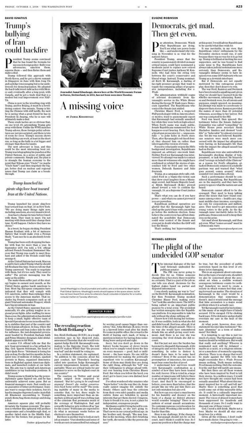 وذكرت الصحيفة في تغريدة لها اليوم 5 تشرين الاول 2018: "هذا العمود كان من المفترض أن يكون مكتوبا من قبل جمال".