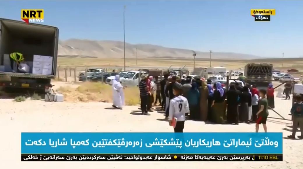 هەکار محەمەد ئەمین رێڤەبەرێ کەمپا شاریا بۆ ئێن ئاڕ تی ڕاگەهاند، ئەڤرۆ حکومەتا ئیماراتێ هەڤکاری گەهاندنە وان ئاواریێن کو ل کەمپا شاریا تۆشی شەوتینێ بووین و بێ جهـ و مال و پێتڤی ماین.