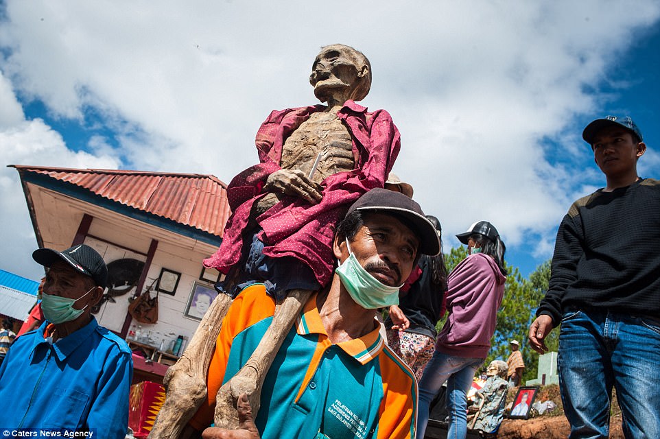 یەکەم: لە دورگەی سولاوسی لە ئەندۆنیسیا هۆزی توراجا دەژین، هەموو ساڵێک لە مانگی تشرینی یەکەمدا لاشەی مردووەکانیان لە گۆڕ دەردەهێنن و پاکیان دەکەنەوە و دەیانڕازێننەوە و پۆشاکی جوانیان لەبەر دەکەن.