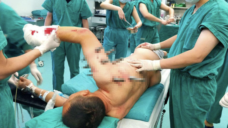 روسیا تودەی نوسیویەتی، چوی کرێکار کە تەمەنی ٤٩ ساڵە کاتێک ئەو پارچە ئاسنانە دەچەقێن بە بەشی ڕاستی لەشییەوە دەبورێتەوە، هاوکارەکانی ناتوانن ئەو پارجە ئاسنانە لە لەشی دەربکەن کە درێژی هەر پارچەیەکی ٣٠سم دەبێت و ئەستوری ١.٣سانتیمەتر دەبێت و کرێکارەکە لە دۆخێکی خراپدا دەبێت، هەربۆیە هاوکارەکانی واهەست دەکەن کە مردبێت، بەپەلە دەیگەیەننە نەخۆشخانەیەکی شاری چوچو لە هەرێمی هۆنان لە باشوری چین.